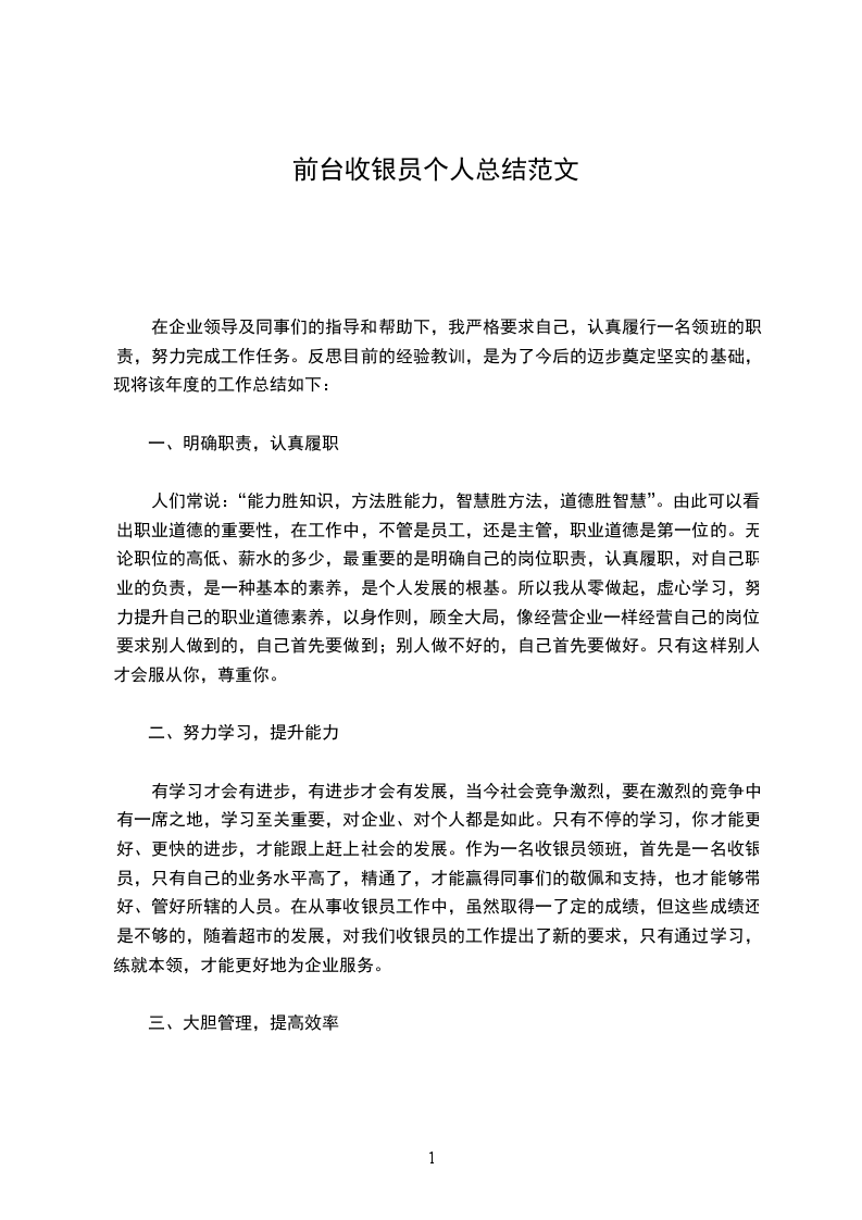 有学习才会有进步,有进步才会有发展,当今社会竞争激烈,要在激烈的竞争中有一席之地,学习至关重要,对企业、对个人都是如此。只有不停的学习,你才能更好、更快的进步,才能跟上赶上社会的发展。作为一名收银员领班,首先是一名收银员,只有自己的业务水平高了,精通了,才能赢得同事们的敬佩和支持,也才能够带好、管好所辖的人员。在从事收银员工作中,虽然取得一了定的成绩,但这些成绩还是不够的,随着超市的发展,对我们收银员的工作提出了新的要求,只有通过学习,练就本领,才能更好地为企业服务。