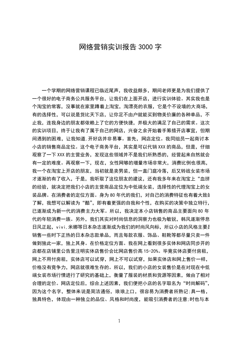 通过这些实训,我的实际操作能力,也得到了进一步提升。作为组长,不仅要做好这些内容,还得有个整体的安排和最终的整合,对整个流程有一个清晰的认识,还要对其他不合理的地方作出修改。不仅在这些网络营销知识上有了提高,而且在组织协调方面学到了很多,还有在最终整合时,对论文格式,word等操作工具有了跟好的学习。总之,这次实习,对我来说是个很好的机会,我会抓住这次机会的。