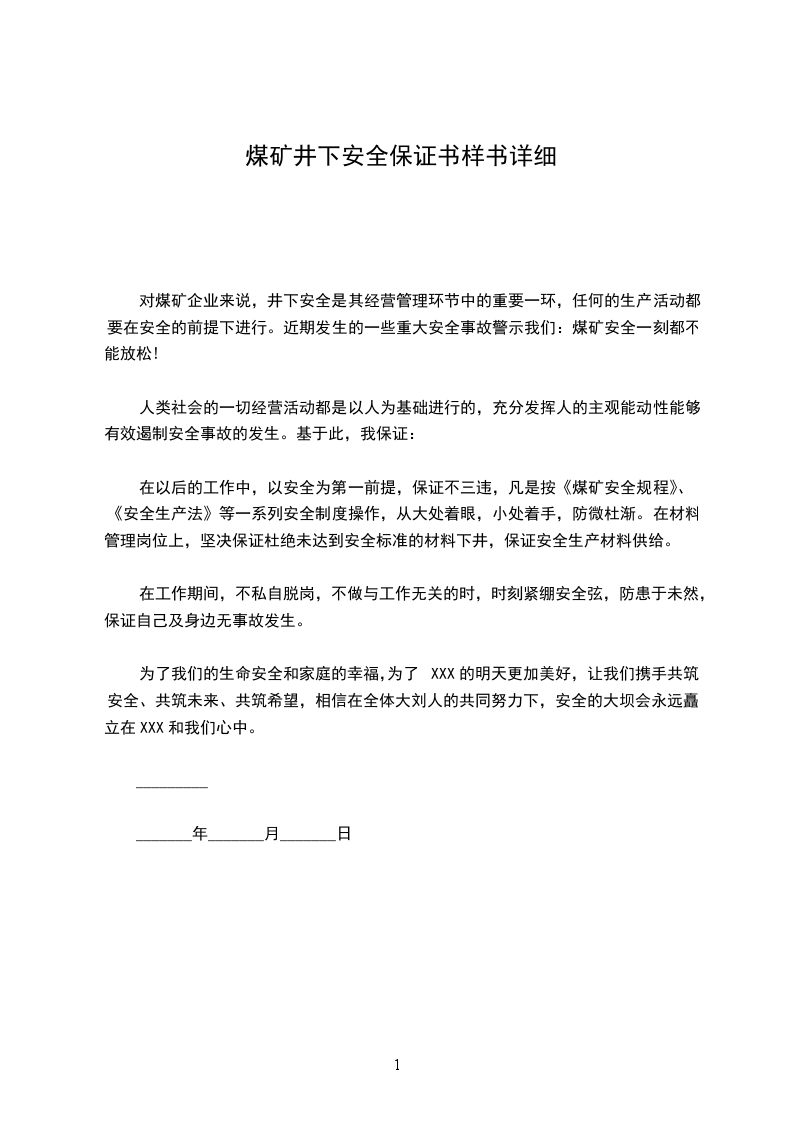 人类社会的一切经营活动都是以人为基础进行的,充分发挥人的主观能动性能够有效遏制安全事故的发生。基于此,我保证: