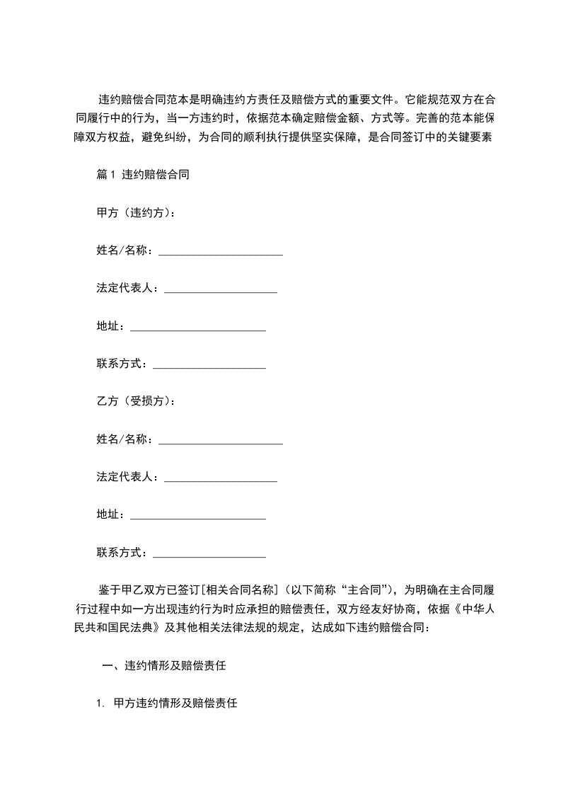 三、乙方收到甲方支付违约金,视同甲方已履行违约赔偿责任,乙方不得再向甲方提出金钱给付主张或要求。