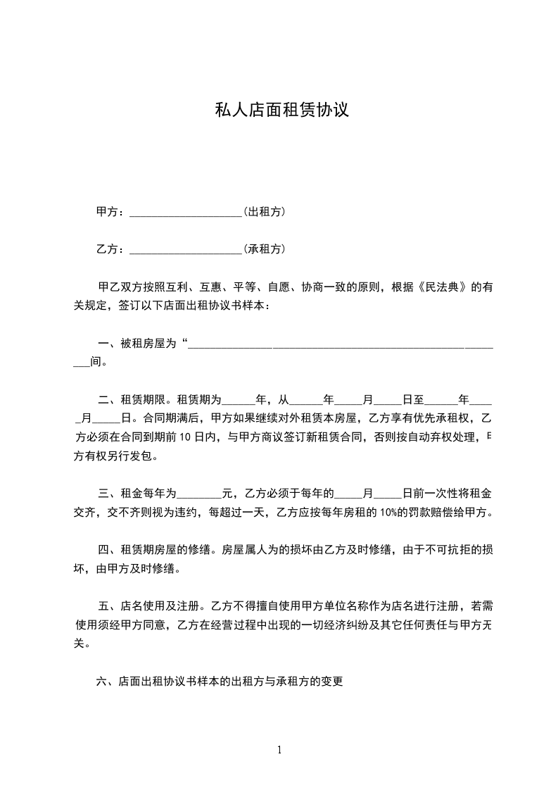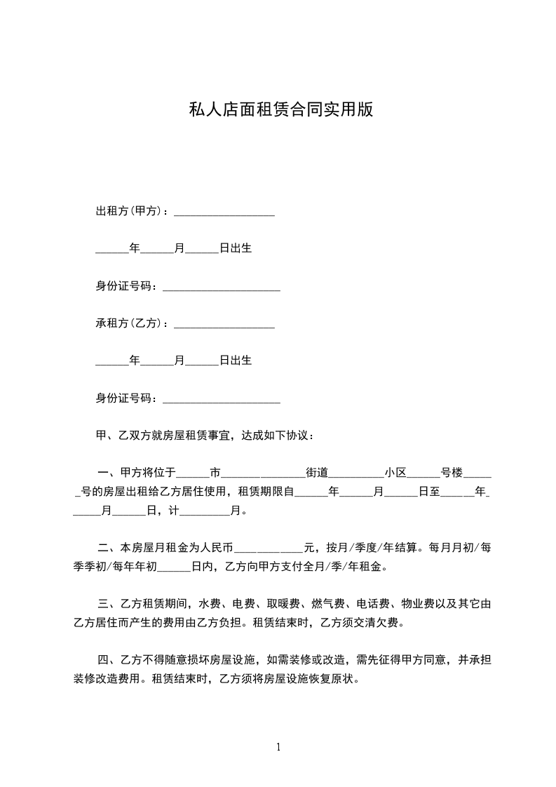 出租方(下称甲方):_________________