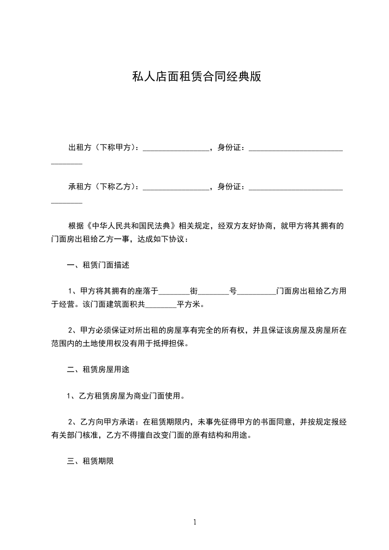 1、甲方将其拥有的座落于________________门面房出租给乙方用于经营。该门面建筑面积共______平方米。