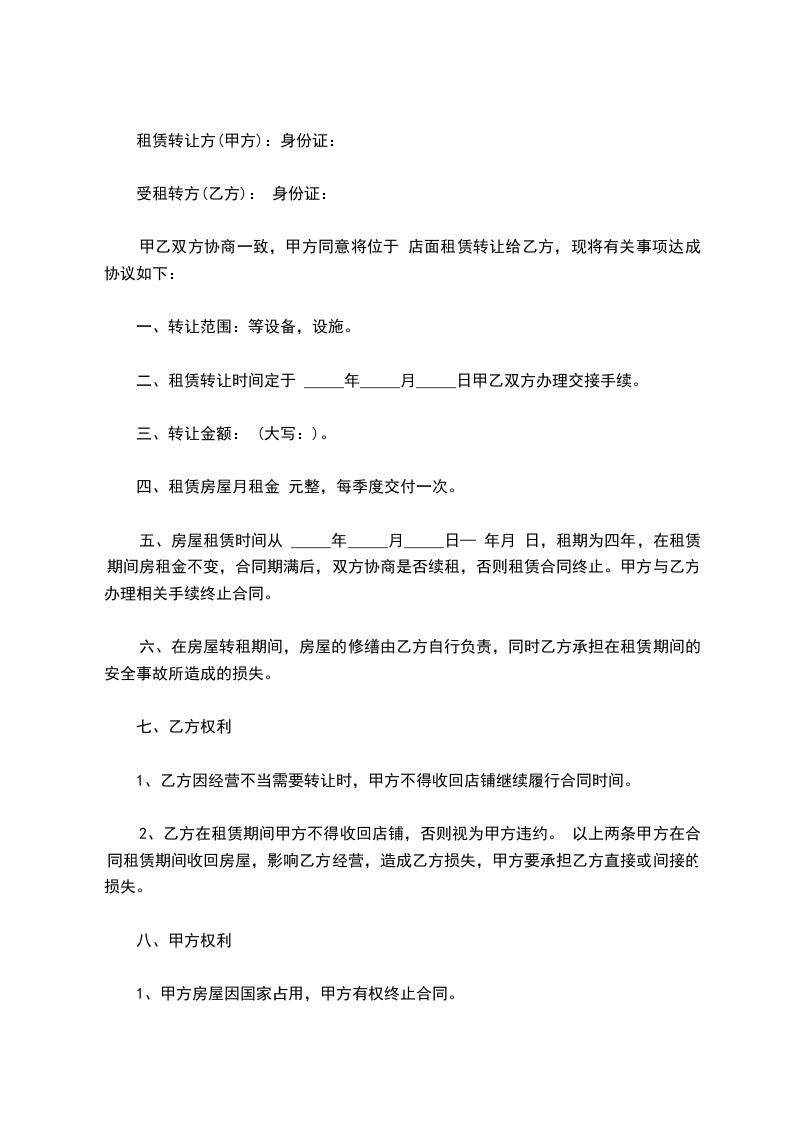1、乙方租赁房屋为商业门面使用。