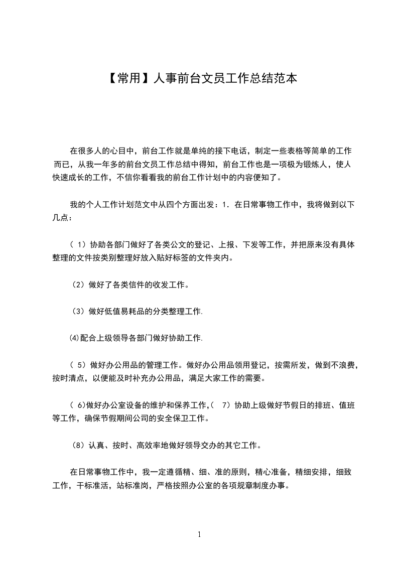 在很多人的心目中,前台工作就是单纯的接下电话,制定一些表格等简单的工作而已,从我一年多的前台文员工作总结中得知,前台工作也是一项极为锻炼人,使人快速成长的工作,不信你看看我的前台工作计划中的内容便知了。