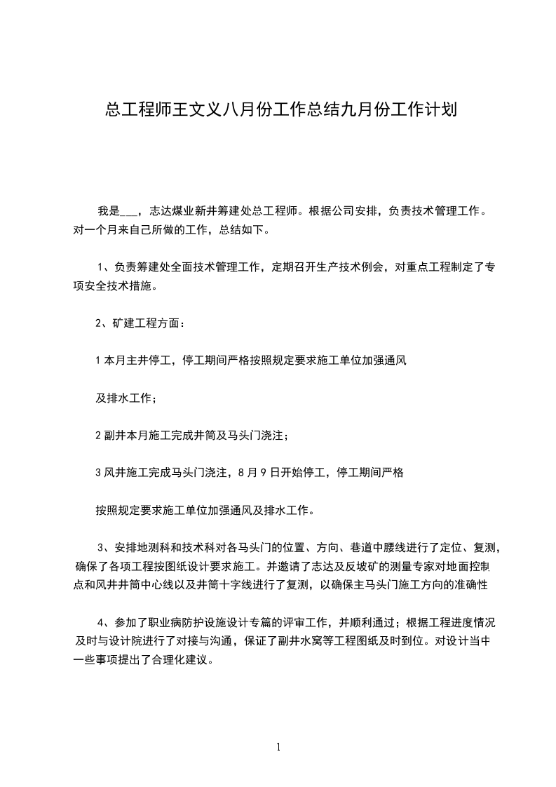 我是___,志达煤业新井筹建处总工程师。根据公司安排,负责技术管理工作。对一个月来自己所做的工作,总结如下。