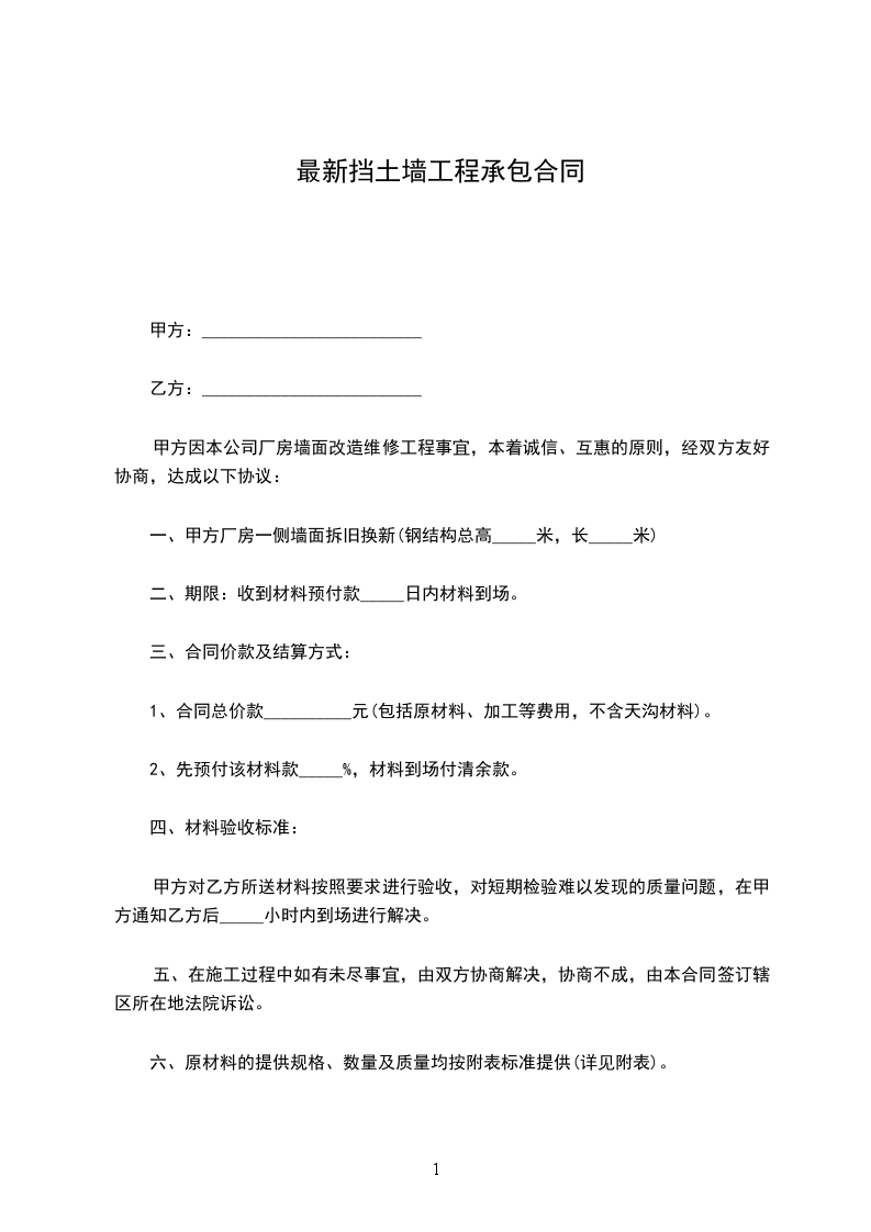 甲方因本公司厂房墙面改造维修工程事宜,本着诚信、互惠的原则,经双方友好协商,达成以下协议: