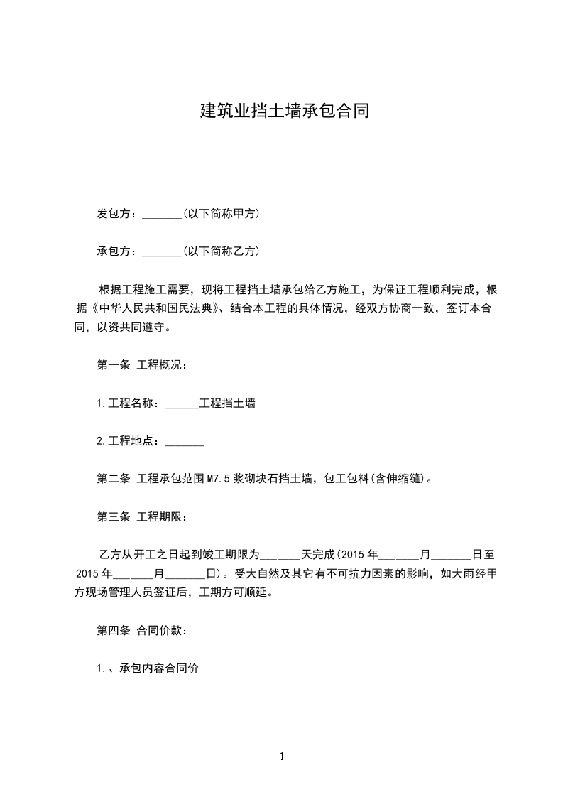1、合同总价款__________元(包括原材料、加工等费用,不含天沟材料)。