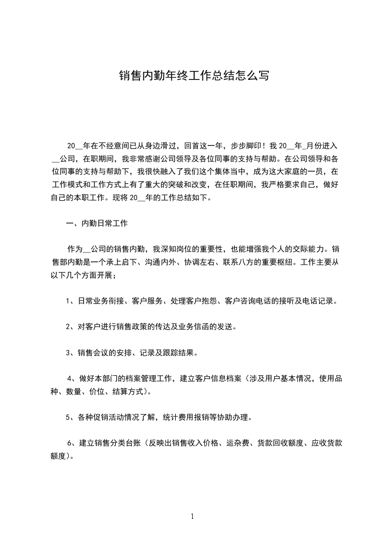 作为__公司的销售内勤,我深知岗位的重要性,也能增强我个人的交际能力。销售部内勤是一个承上启下、沟通内外、协调左右、联系八方的重要枢纽。工作主要从以下几个方面开展;