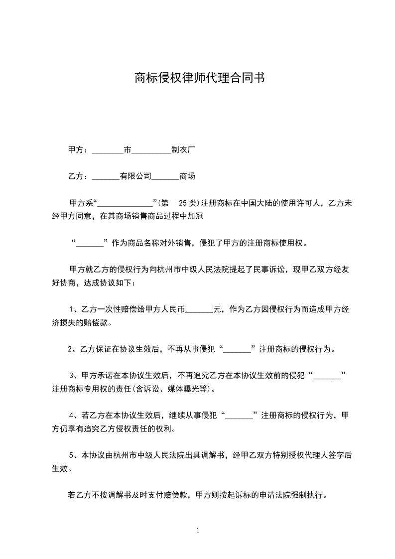 2、乙方保证在协议生效后,不再从事侵犯“_______”注册商标的侵权行为。