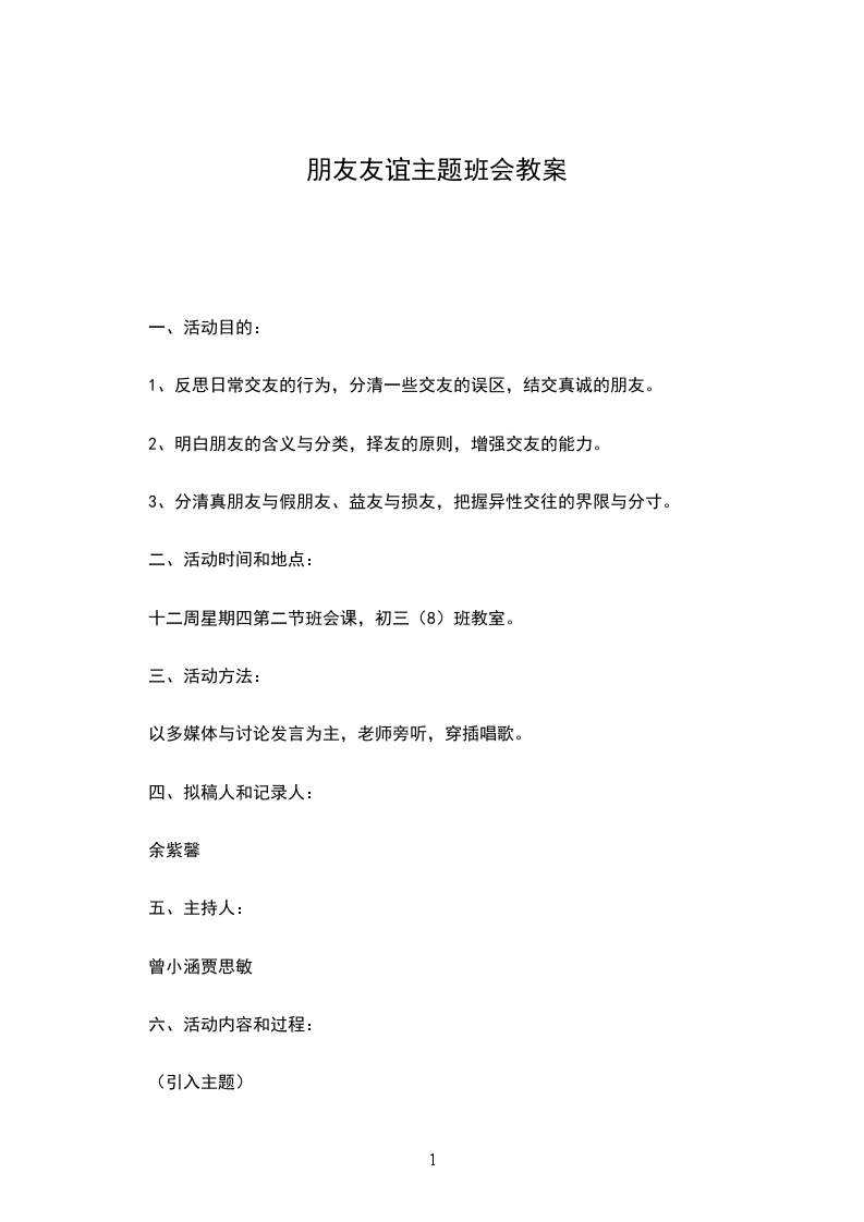 2、明白朋友的含义与分类,择友的原则,增强交友的能力。