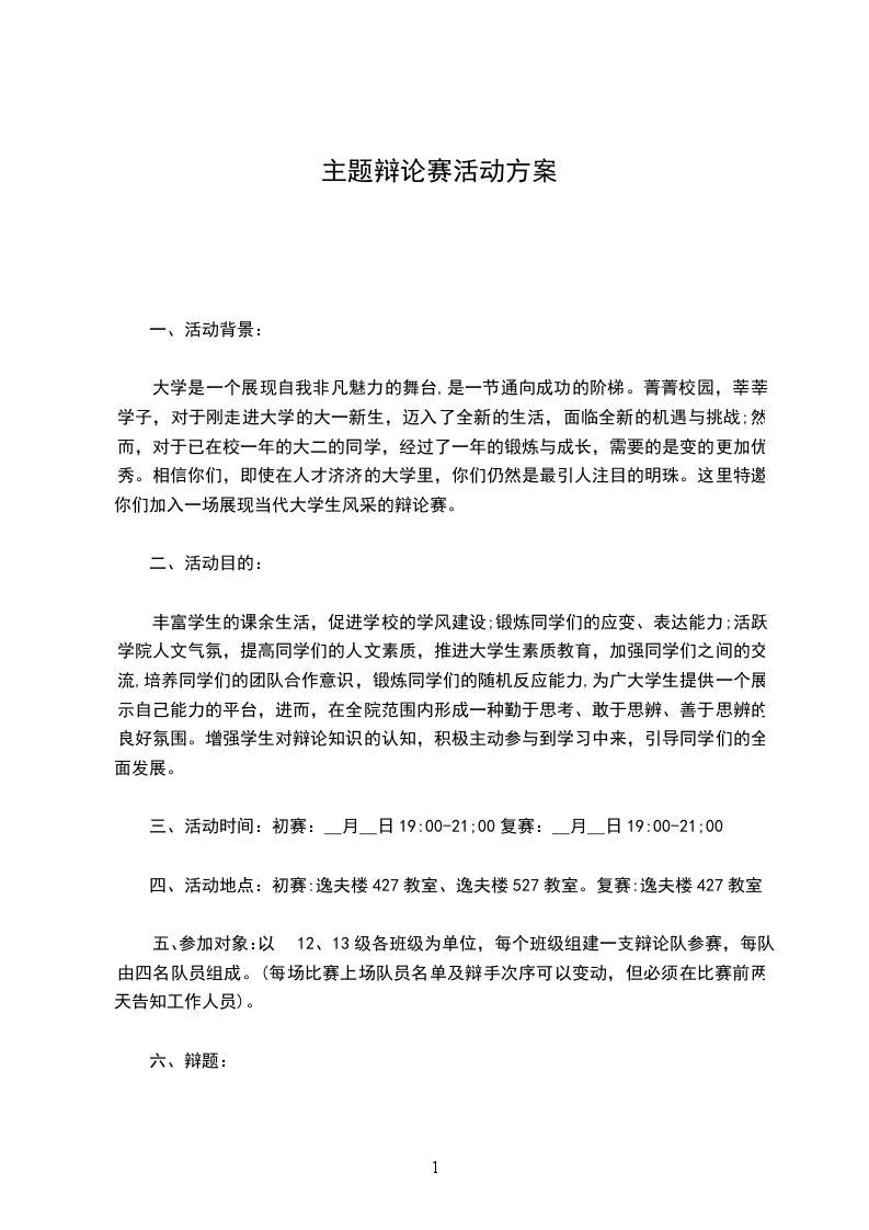 (1)大赛主题(每次辩论就情况选择一个辩题)