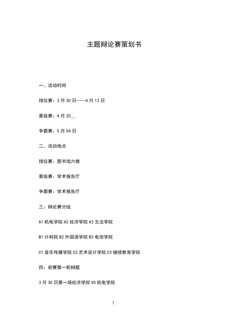 1、各参赛队领队、队员仔细阅读本次辩论赛方案,熟悉有关赛程安排。