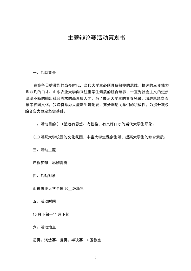 二、活动目的(一)塑造有思想、有性格、有良好口才的当代大学生形象。