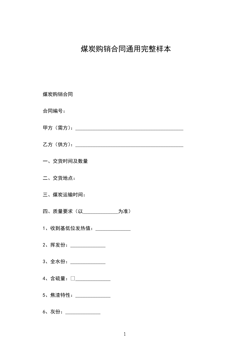 煤炭购销合同