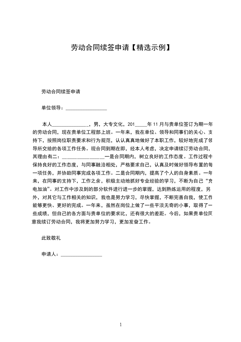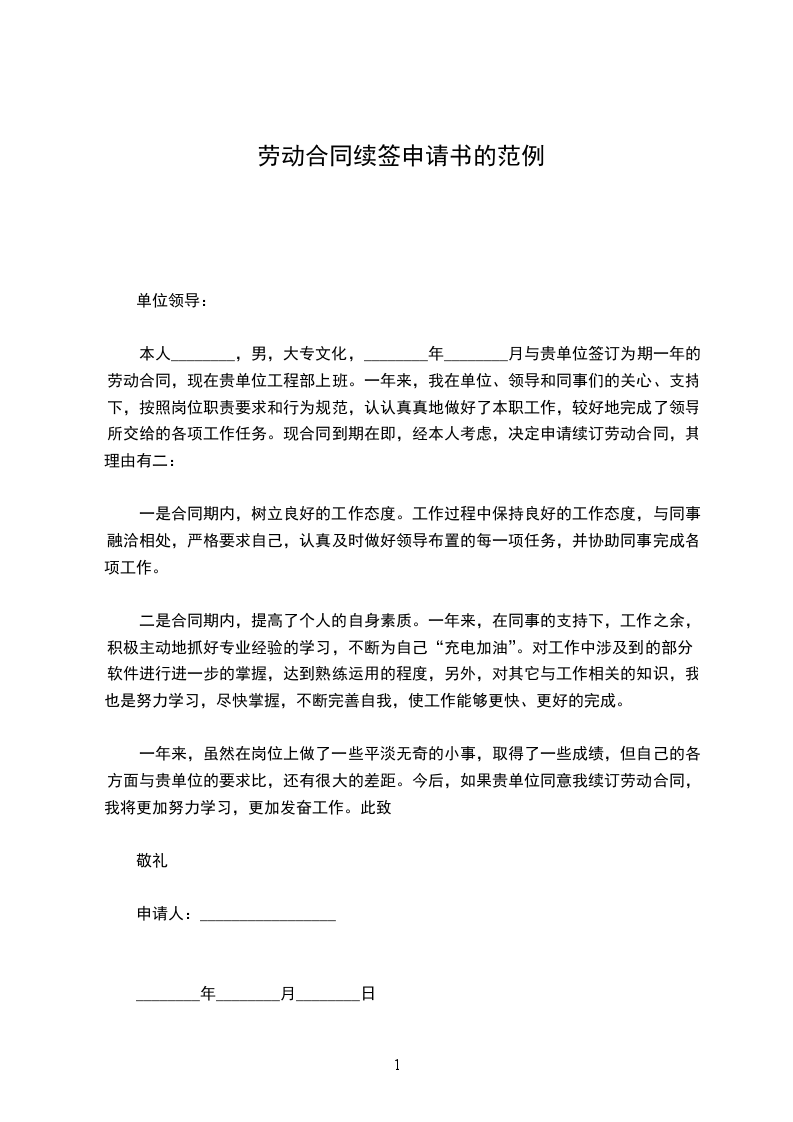 我公司自__________年__________月与贵司合作以来,十分愉快。贵司信誉良好(将对方大肆赞美一通,寄予了我们大力支持等等,我们不胜感激等等)。鉴于我公司与贵司的_______________商务合同将于_______________时间到期,我公司真诚希望继续与贵司进行合作,续签_____________商务合同至于________年________月________日,请贵司继续寄予我司以支持。