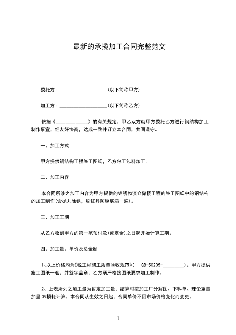 定作方委托承揽方加工________________,经双方充分协商,特订立本合同,以便共同遵守。