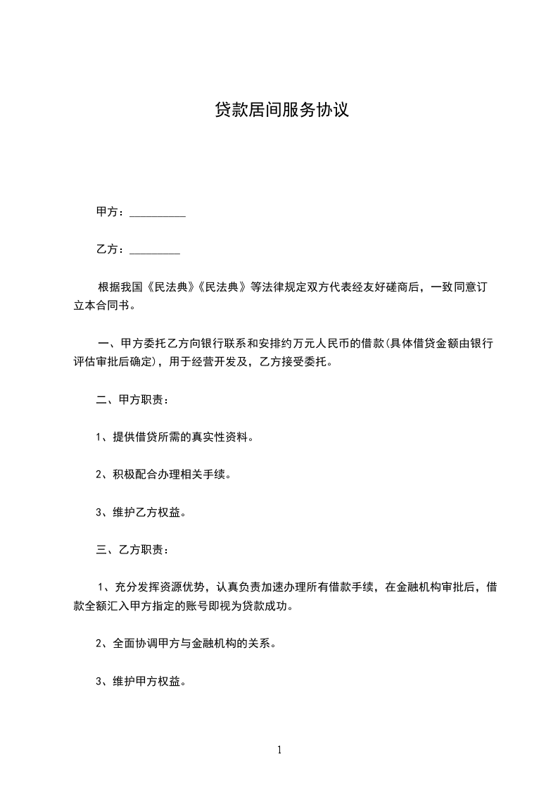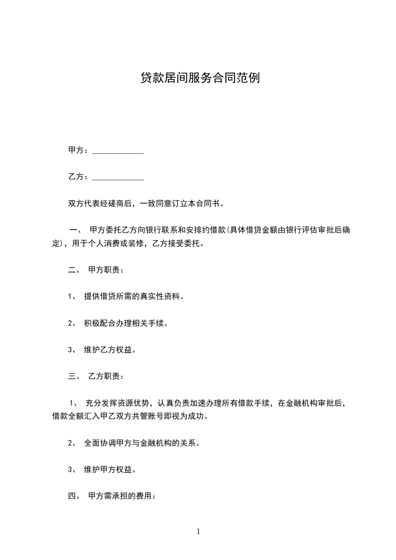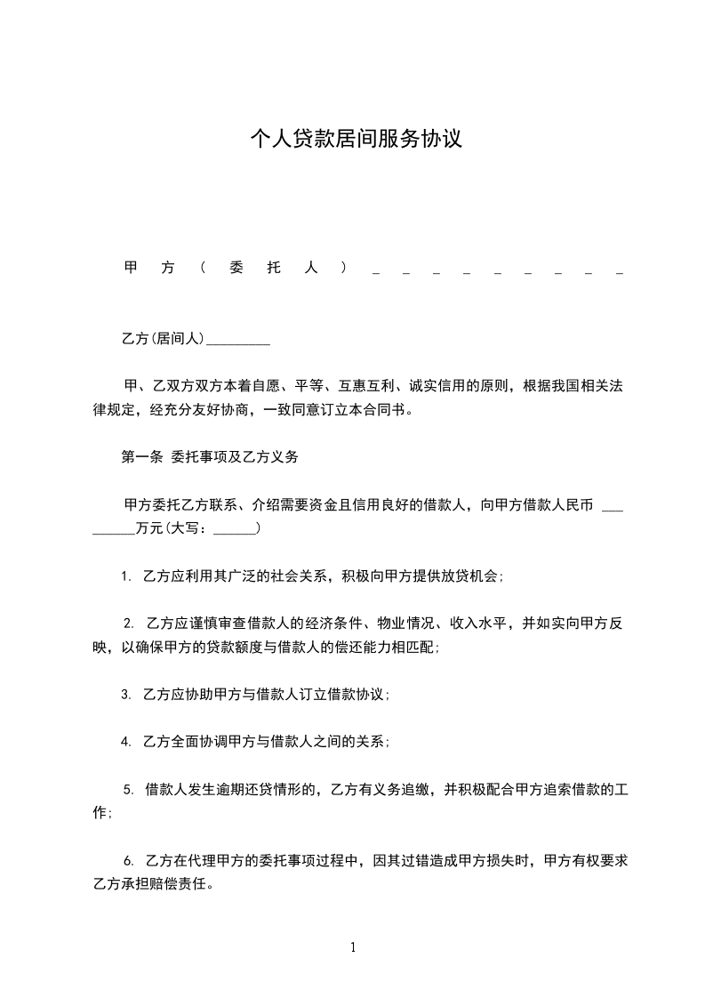 一、 甲方委托乙方向银行联系和安排约借款(具体借贷金额由银行评估审批后确定),用于个人消费或装修,乙方接受委托。