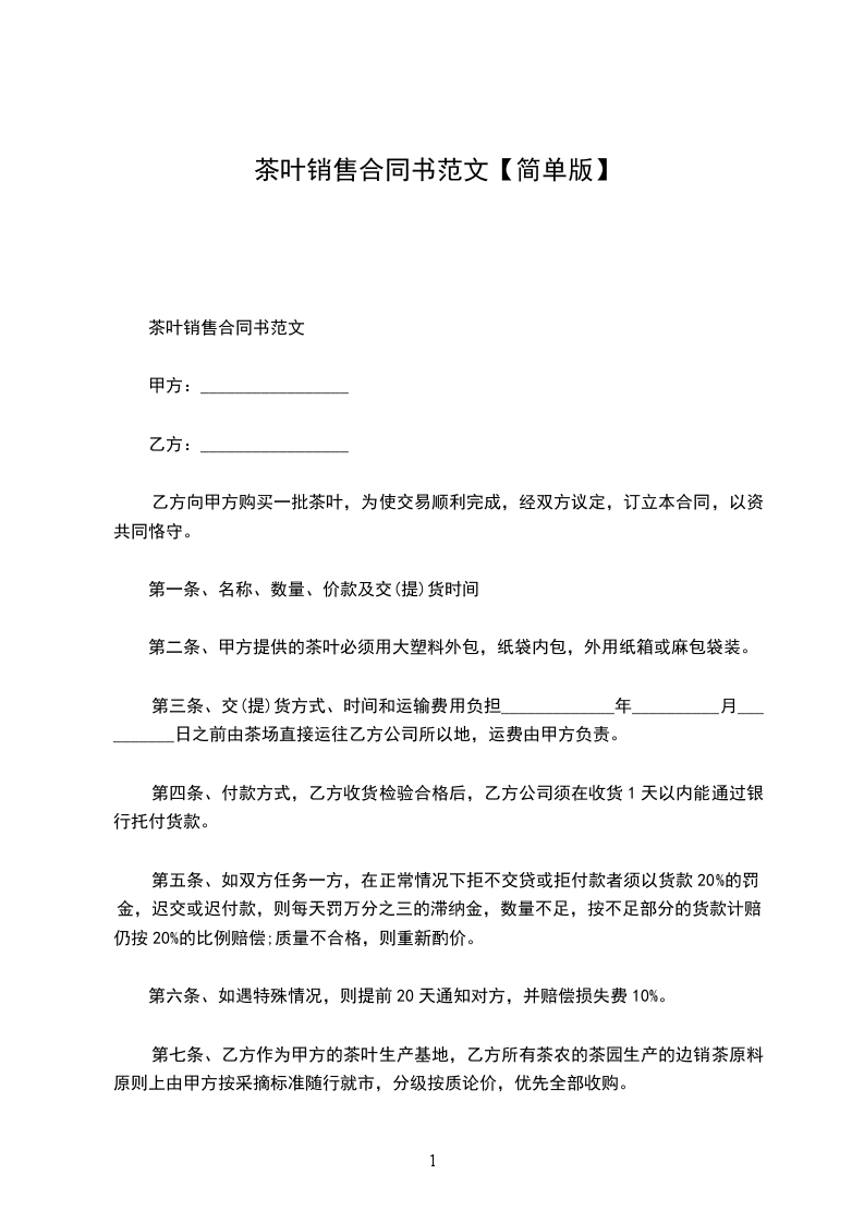 乙方向甲方购买一批茶叶,为使交易顺利完成,经双方议定,订立本合同,以资共同恪守。