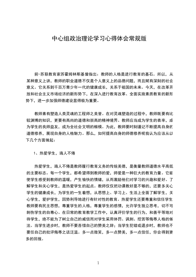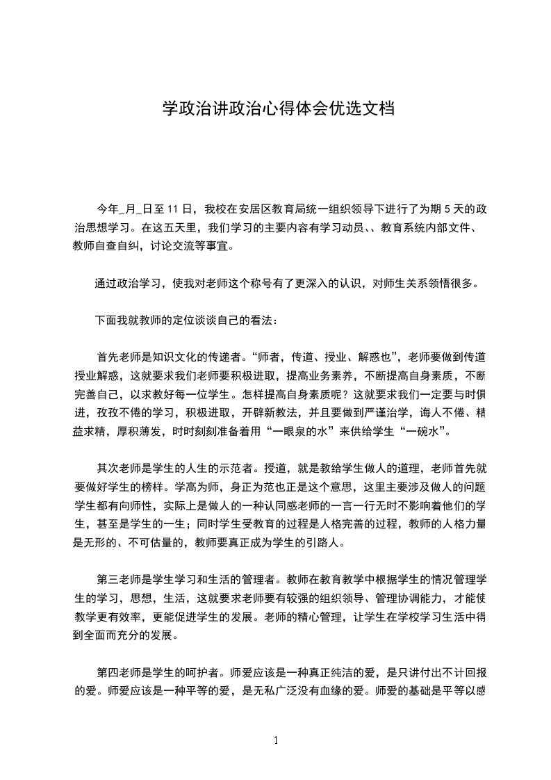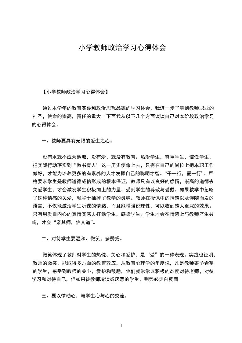 【小学教师政治学习心得体会】