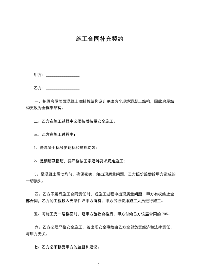 1、工程材料、设备由乙方采购。