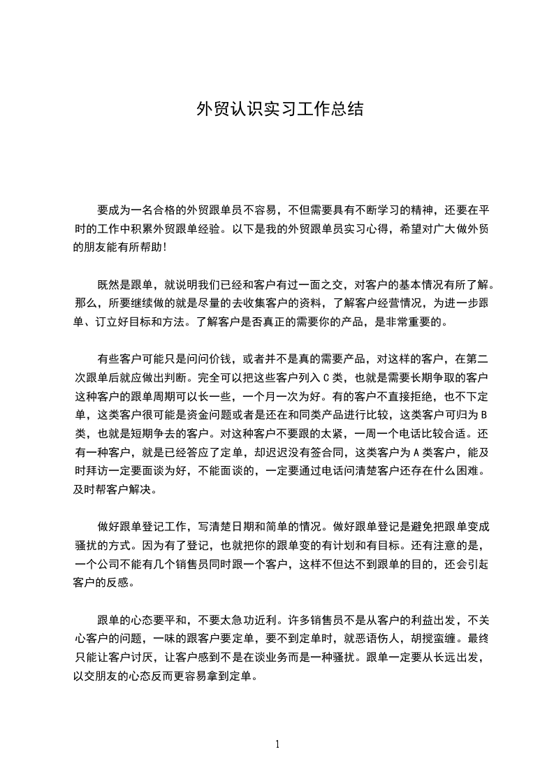 要成为一名合格的外贸跟单员不容易,不但需要具有不断学习的精神,还要在平时的工作中积累外贸跟单经验。以下是我的外贸跟单员实习心得,希望对广大做外贸的朋友能有所帮助!