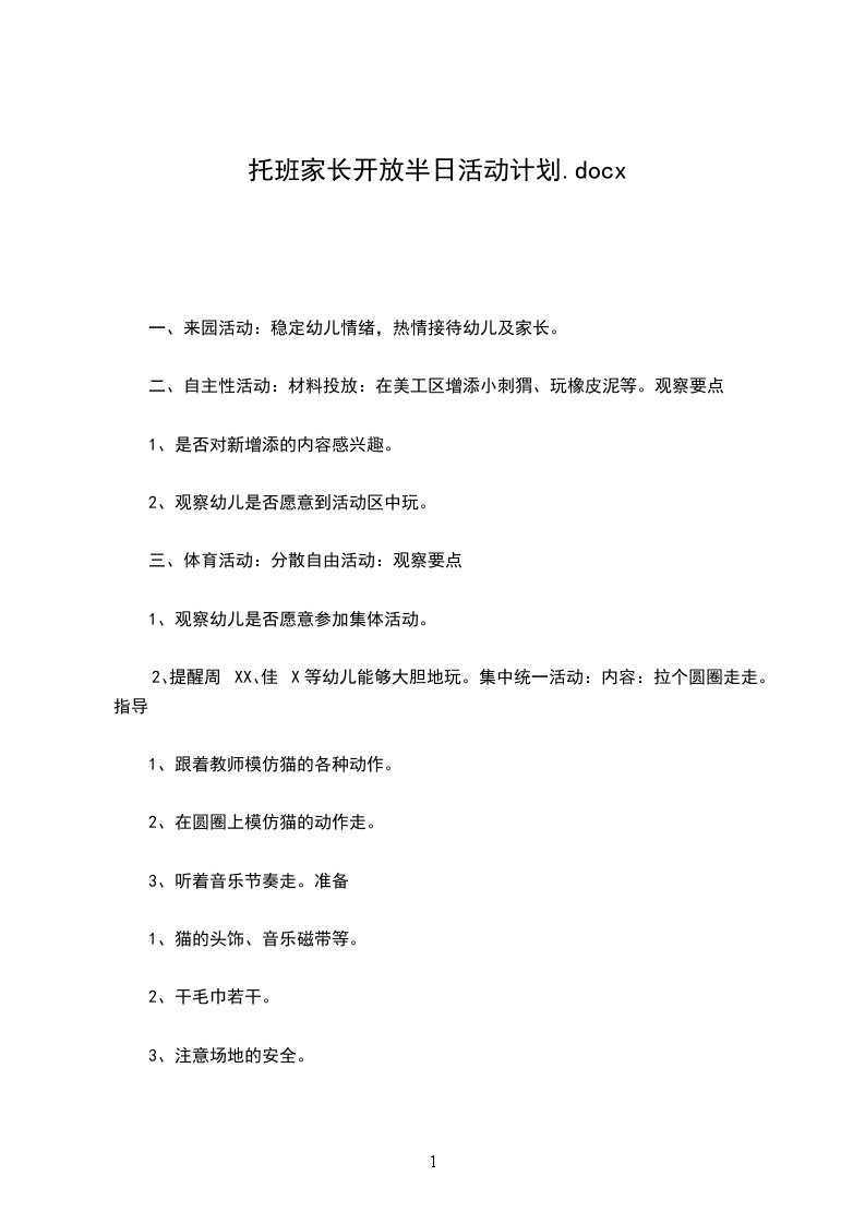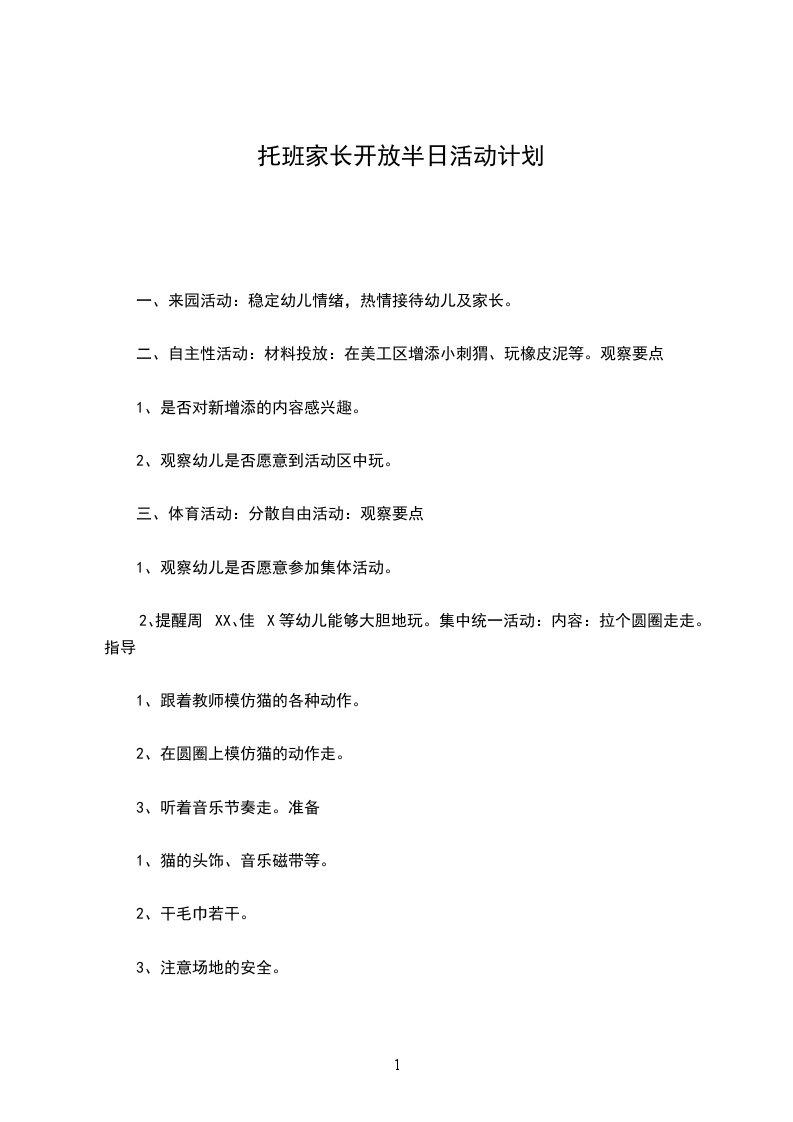 一、时间:20__年11月日二、活动安排:晨间活动:(一)来园