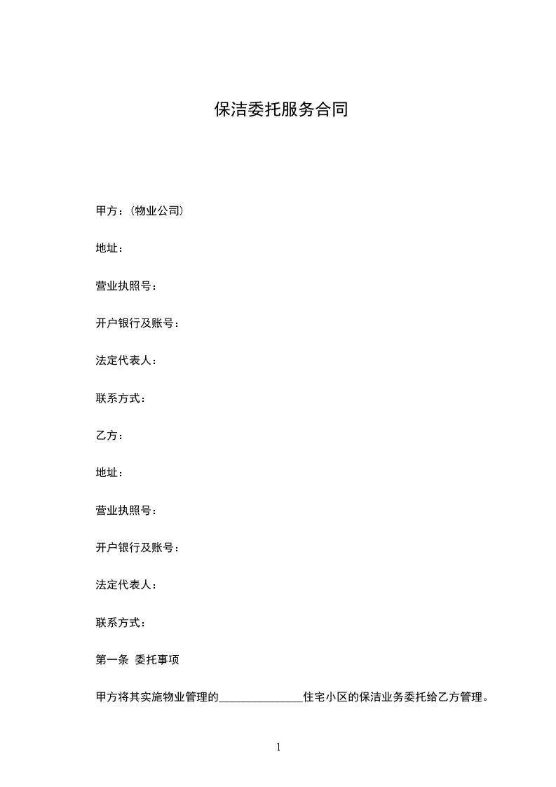 第一条甲方现将_________区域日常保洁工作委托给乙方。