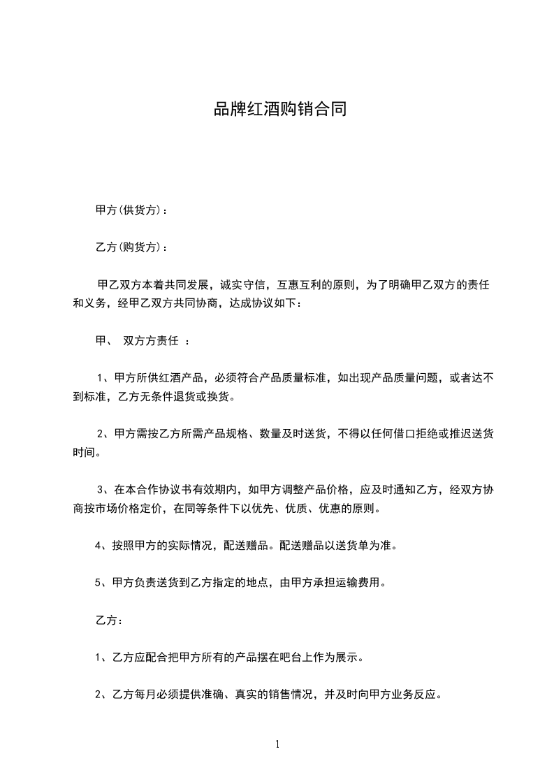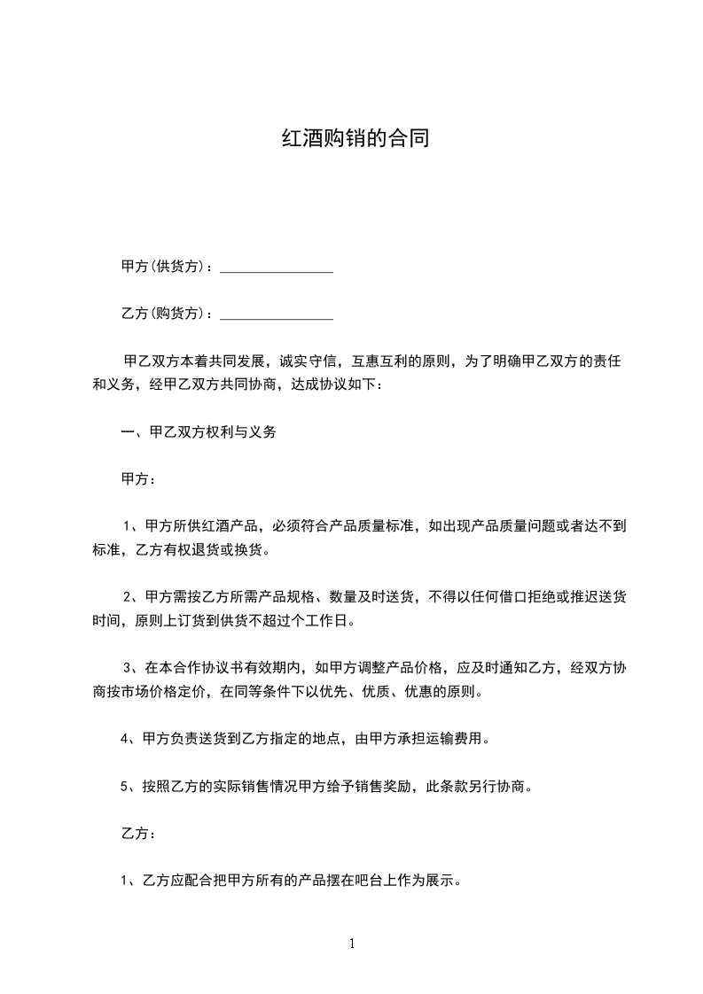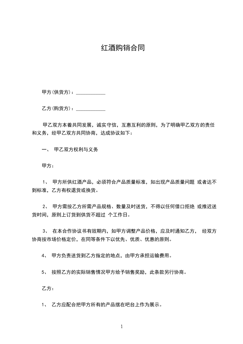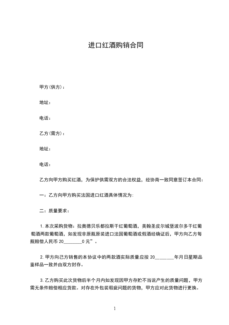 1、 甲方所供红酒产品,必须符合产品质量标准,如出现产品质量问题 或者达不到标准,乙方有权退货或换货。