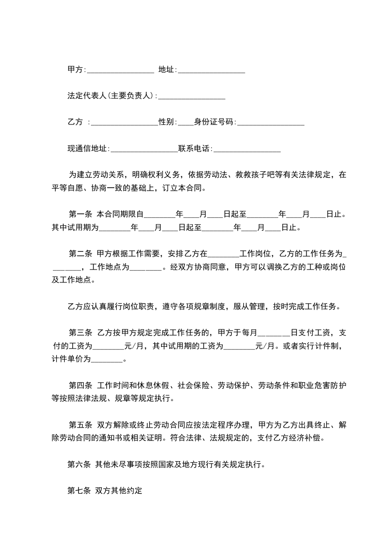 为建立劳动关系,明确权利义务,依据劳动法、救救孩子吧等有关法律规定,在平等自愿、协商一致的基础上,订立本合同。