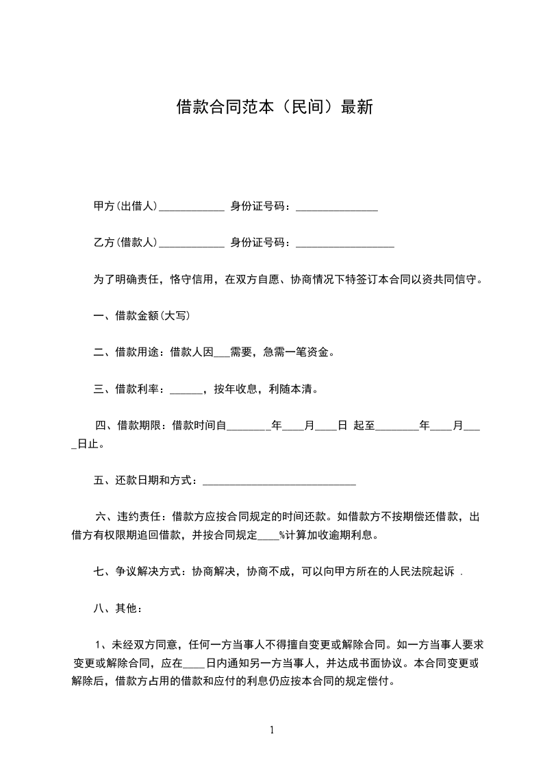 甲方(借款人)_________ 乙方(出借人)_________