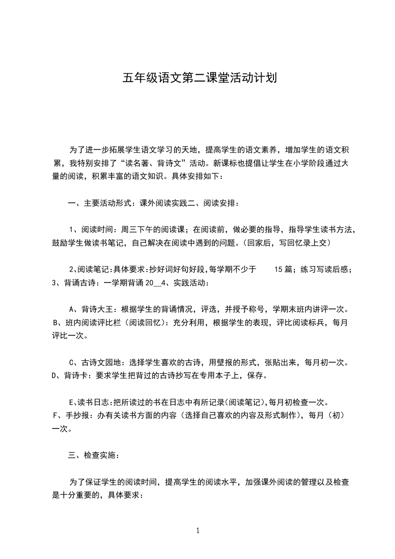 一、主要活动形式:课外阅读实践二、阅读安排: