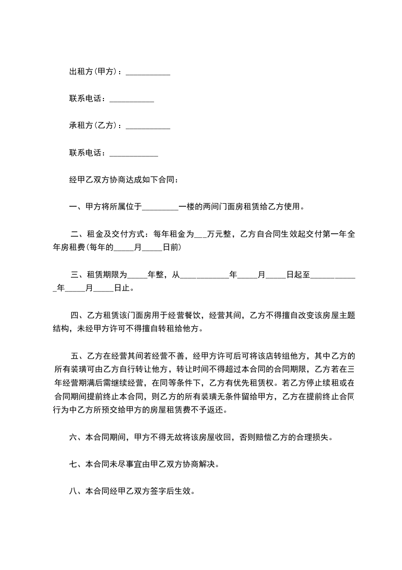 2、租期从_________年_________月_________日起至_________年_________月_________日止(即:_________年_________月)。
