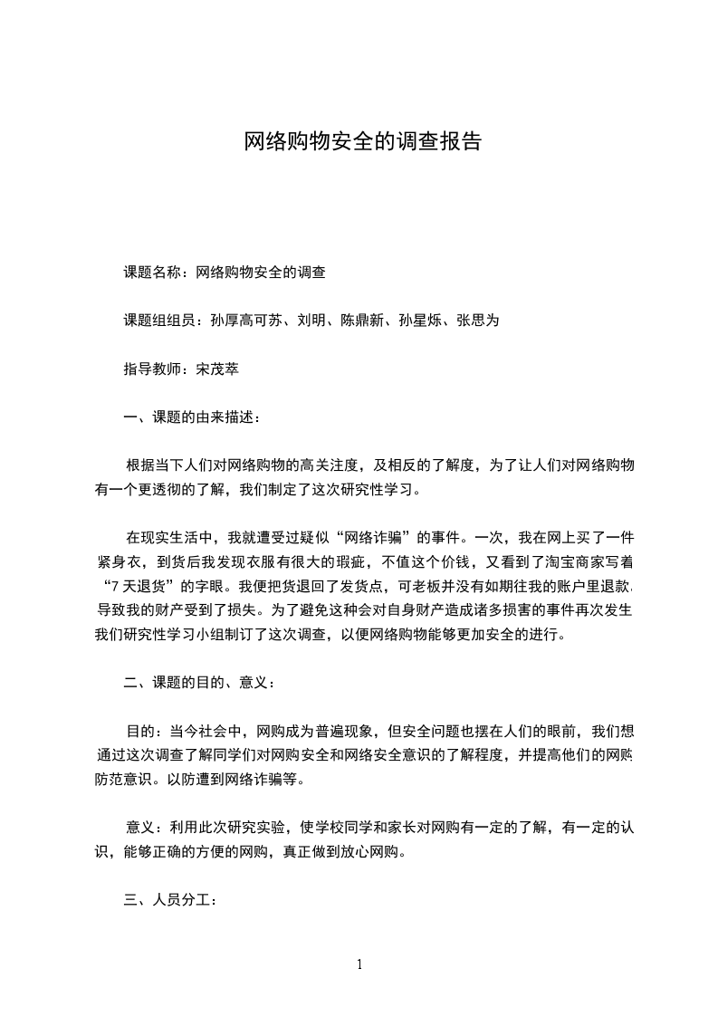 在现实生活中,我就遭受过疑似“网络诈骗”的事件。一次,我在网上买了一件紧身衣,到货后我发现衣服有很大的瑕疵,不值这个价钱,又看到了淘宝商家写着“7天退货”的字眼。我便把货退回了发货点,可老板并没有如期往我的账户里退款。导致我的财产受到了损失。为了避免这种会对自身财产造成诸多损害的事件再次发生,我们研究性学习小组制订了这次调查,以便网络购物能够更加安全的进行。