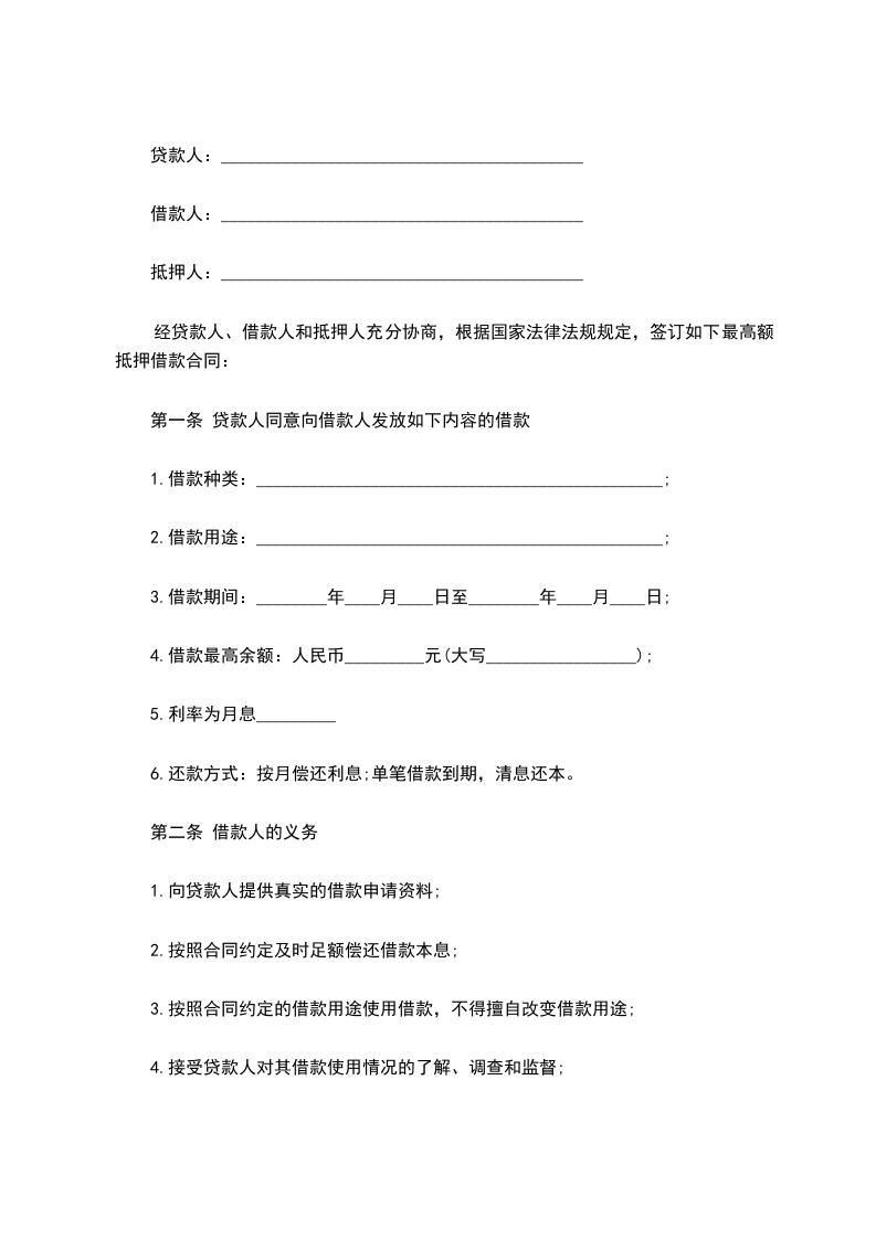 经贷款人、借款人和抵押人充分协商,根据国家法律法规规定,签订如下最高额抵押借款合同: