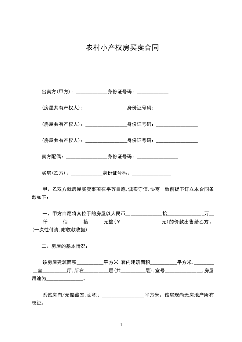 一、甲方自愿将其位于的房屋以人民币_______________拾_______________万______仟______佰______拾______元整(¥________________元)的价款出售给乙方。(一次性付清,附收款收据)
