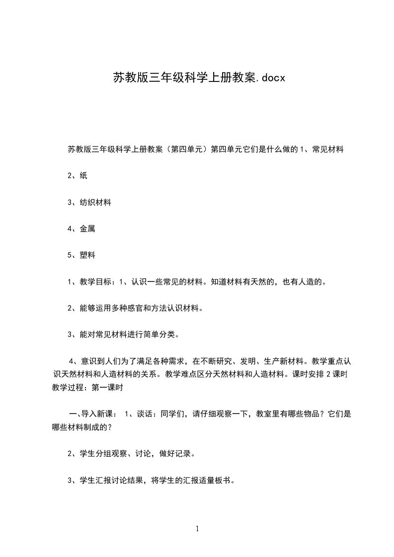教学目标1、能从“这是什么”“为什么会这样”等角度对周围事物提出问题,并能选择自己探究的问题。2、能以亲身经历来理解科学,并与科学家的经历做对比,找出两者之间的相似之处,进一步明确科学是什么,体会做科学的满足感。3、通过寻找有生命的物体,建立起符合学生思维发展特点的有生命物体的科学概念,使学生知道自然界中的物体分为生物和非生物两类,知道生物有能够繁殖、长大、呼吸、吃东西、运动等几个基本特征。4、通过对植物的观察、分类,引导学生认识绿色开花植物的六大器官,了解植物的多样性,知道植物作为有生命物体所具有的基本特征;通过对两个不同类动物的观察以及对它们之间的比较,认识动物的一般特征。5、通过对人的观察,与植物、动物进行比较,找出不同和相同之处,从而进一步理解生物的特征,完成现阶段对“生物”这一大概念的认识。并以活动经历和体验的形式进行爱护动植物、珍爱生命、保护生态环境的教育。6、能有顺序、有目的、仔细地观察。运用看、摸、听等多种方法进行观察,综合运用感官感知事物。并能用文字、图画、表格等多种形式记录和呈现观察结果。和同学交流,相互评价观察结果。7、能从多角度认识水的重要作用,理解水是生命之源的真正含义;能够用多种方法证明物体中含有水。三、教学措施1、首先加强教师自身的科学教学基本功的训练是最主要的。平时要充分利用空闲时间,应用新课程理念,用好《课程标准》、《教材》、《教师用书》三本书;认真学习科学教学课程标准,科学教材,认真钻研科学教法学法,尽快成为一名合格的科学教师。2、结合所教班级、所教学生的具体情况,尽可能在课堂上创设一个民主、和谐、开放的教学氛围。以学生为课堂教学的主体,设计符合学生年龄特征的教学法进行课堂教学,采取一切手段调动学生学习科学的积极性和兴趣。3、充分利用好学校的科学实验室,尽可能的去科学实验室上课,创设科学探究的情景,多通过实验引导学生自己发现问题,解决问题,得到收获。4、注重学生课外的拓展研究,充分利用课程和校本资源,要将学生带出教室,到大自然中去,到社会中去,将科学课的学习从课堂延伸扩展到活动课程,扩展到家庭和社会。5、认真钻研教材、重视对学生典型科学探究活动的设计,做好课前准备工作,运用多种评价手段,激励学生的探究兴趣。