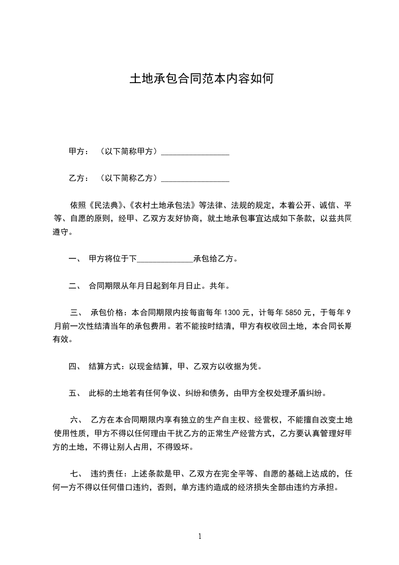 承包费________亩地________年共计________________元(大写:________________)在签订合同时,乙方一次性付清所有承包费。