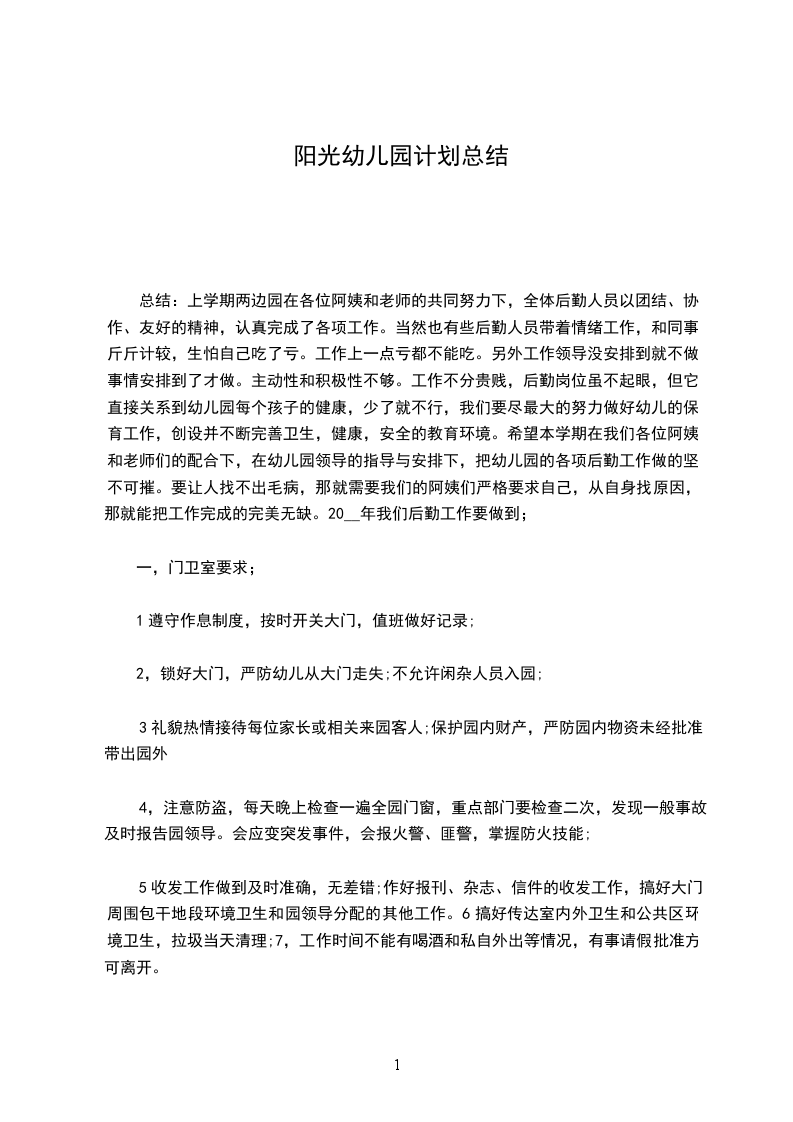 总结:上学期两边园在各位阿姨和老师的共同努力下,全体后勤人员以团结、协作、友好的精神,认真完成了各项工作。当然也有些后勤人员带着情绪工作,和同事斤斤计较,生怕自己吃了亏。工作上一点亏都不能吃。另外工作领导没安排到就不做,事情安排到了才做。主动性和积极性不够。工作不分贵贱,后勤岗位虽不起眼,但它直接关系到幼儿园每个孩子的健康,少了就不行,我们要尽最大的努力做好幼儿的保育工作,创设并不断完善卫生,健康,安全的教育环境。希望本学期在我们各位阿姨和老师们的配合下,在幼儿园领导的指导与安排下,把幼儿园的各项后勤工作做的坚不可摧。要让人找不出毛病,那就需要我们的阿姨们严格要求自己,从自身找原因,那就能把工作完成的完美无缺。20__年我们后勤工作要做到;