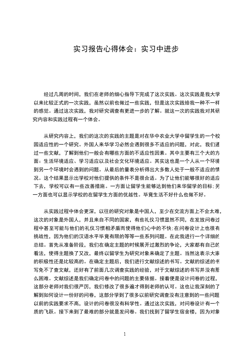 从研究内容上,我们的这次的实践的主题是对在华中农业大学中留学生的一个校园适应性的一个研究。外国人来华学习必然会遇到很多不适应的问题,对此,我们通过一些文献,了解到他们一般会有哪些方面的不适应性因素。其中主要有三个大的方面:生活环境适应、学习适应以及社会文化环境适应。其实这也是一个人从一个环境到另一个环境时会遇到的问题。从最后的量表分析得出大多数人处于一般不适应的情况。这个结果显示出学校对他们提供的条件不是很合适。为了让他们能够很好的适应下去,学校可以有一些改善措施。一方面让留学生能够达到他们来华留学的目标;另一方面也可以显示学校的在留学生方面的优越性。毕竟生活不好什么也做不好。