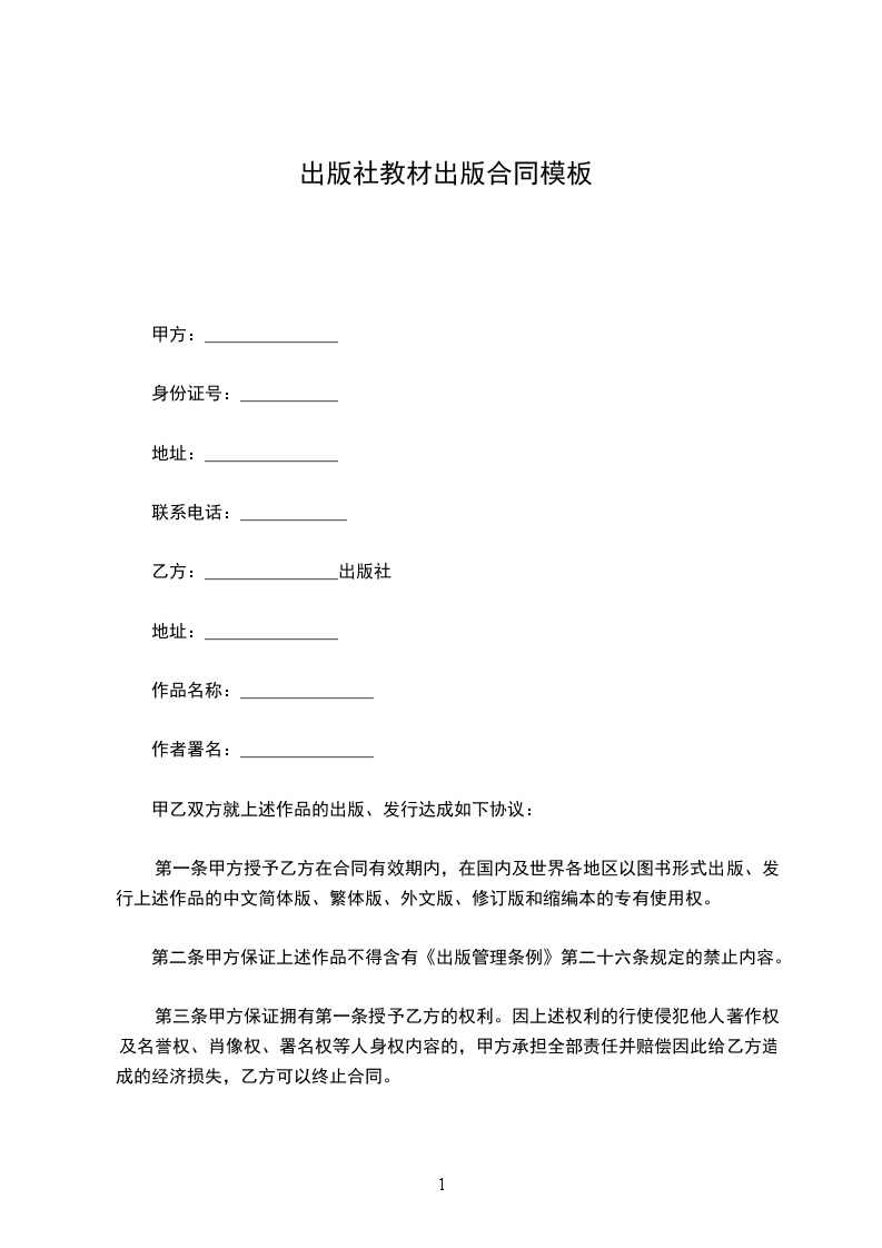 出版社教材出版合同模板