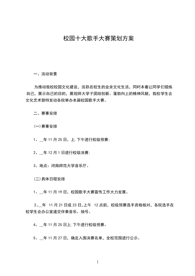 2、__年11月21日或23日,上午12点前,校级预赛选手资格核对,各院选手在校学生会办公室递交伴奏音乐、抽号。