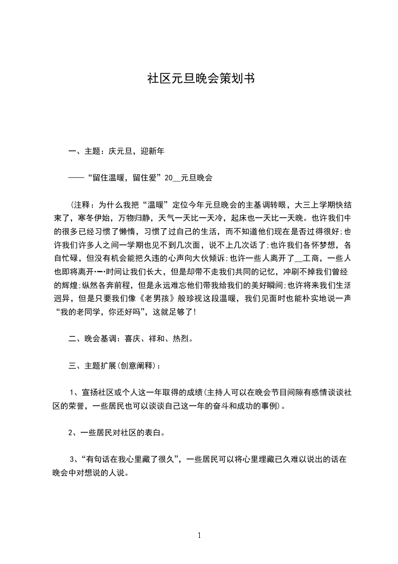 1、宣扬社区或个人这一年取得的成绩(主持人可以在晚会节目间隙有感情谈谈社区的荣誉,一些居民也可以谈谈自己这一年的奋斗和成功的事例)。