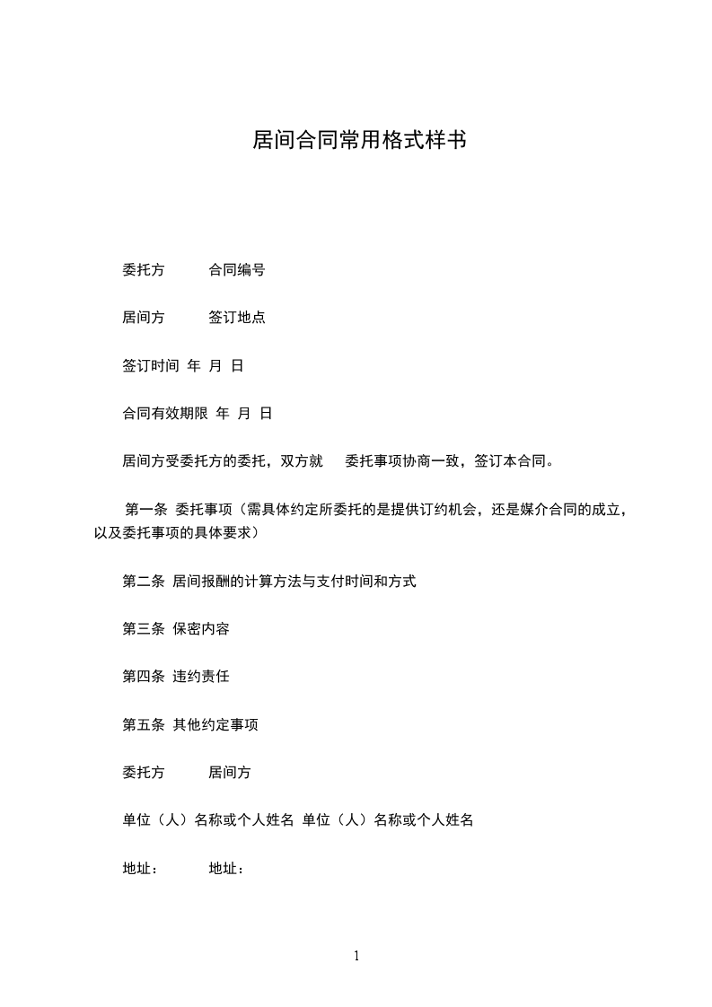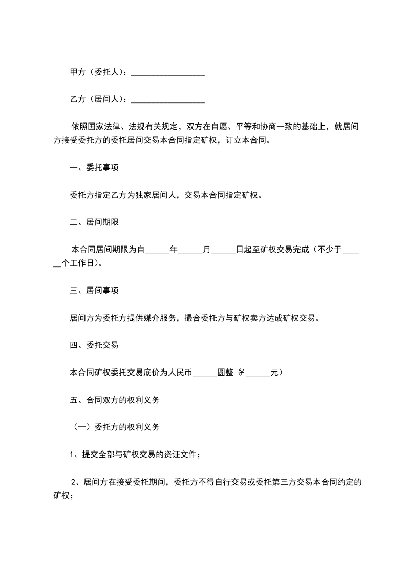 居间方受委托方的委托,双方就_________________委托事项协商一致,签订本合同。