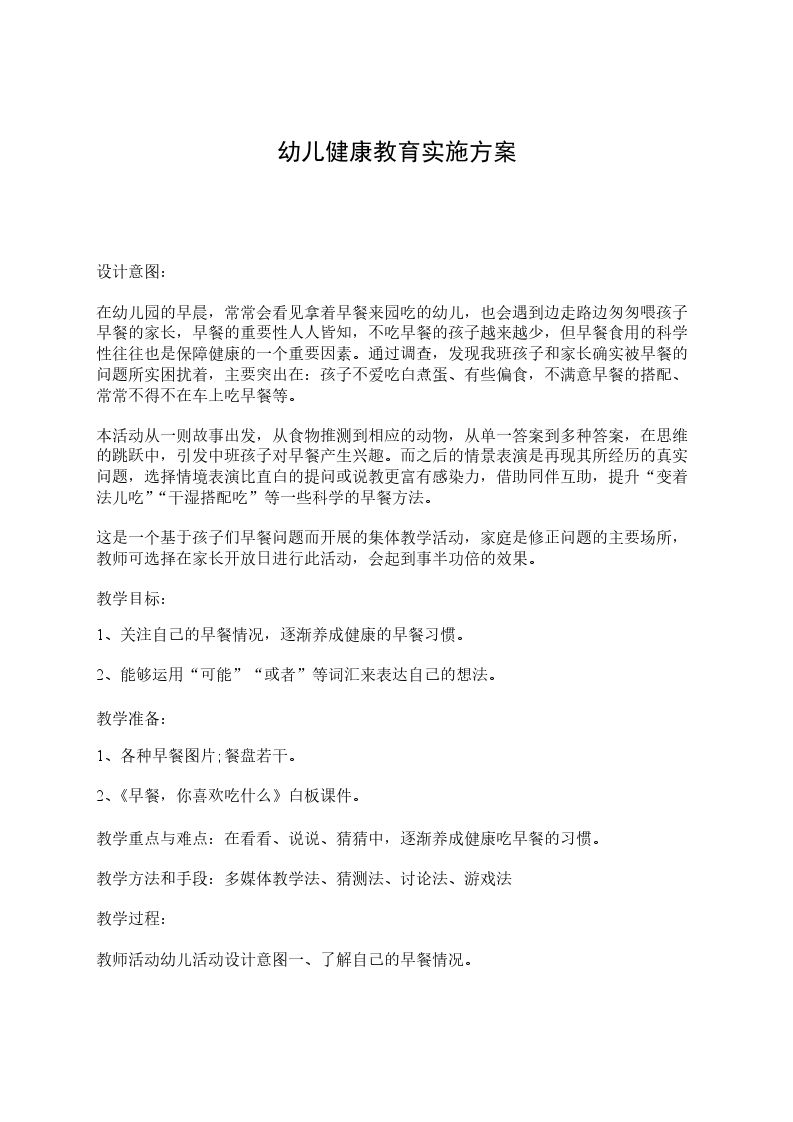这是一个基于孩子们早餐问题而开展的集体教学活动,家庭是修正问题的主要场所,教师可选择在家长开放日进行此活动,会起到事半功倍的效果。