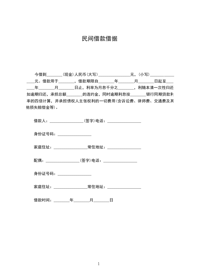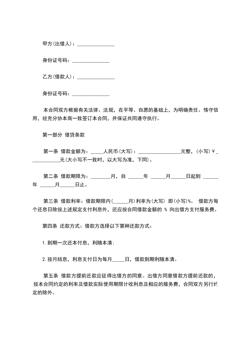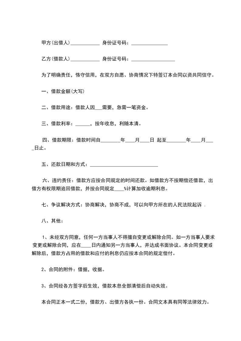 甲方(借款人)_________ 乙方(出借人)_________