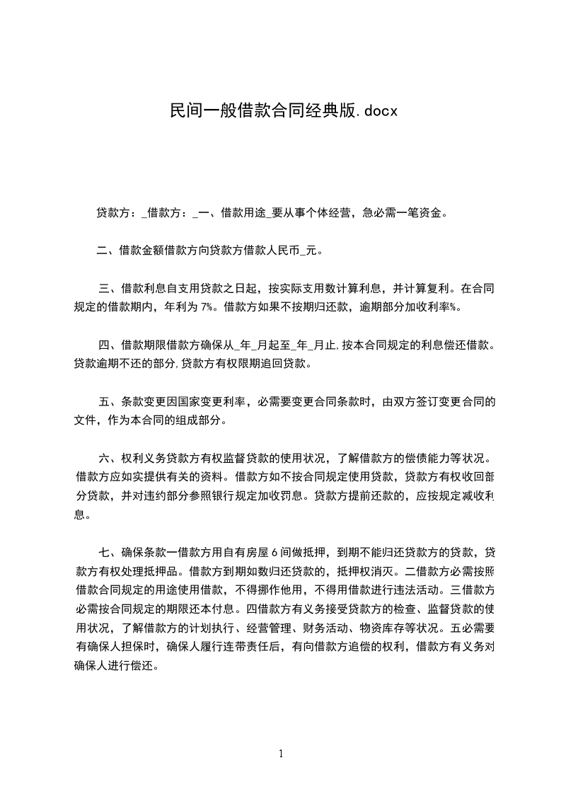 1、未经双方同意,任何一方当事人不得擅自变更或解除合同。如一方当事人要求变更或解除合同,应在____日内通知另一方当事人,并达成书面协议。本合同变更或解除后,借款方占用的借款和应付的利息仍应按本合同的规定偿付。