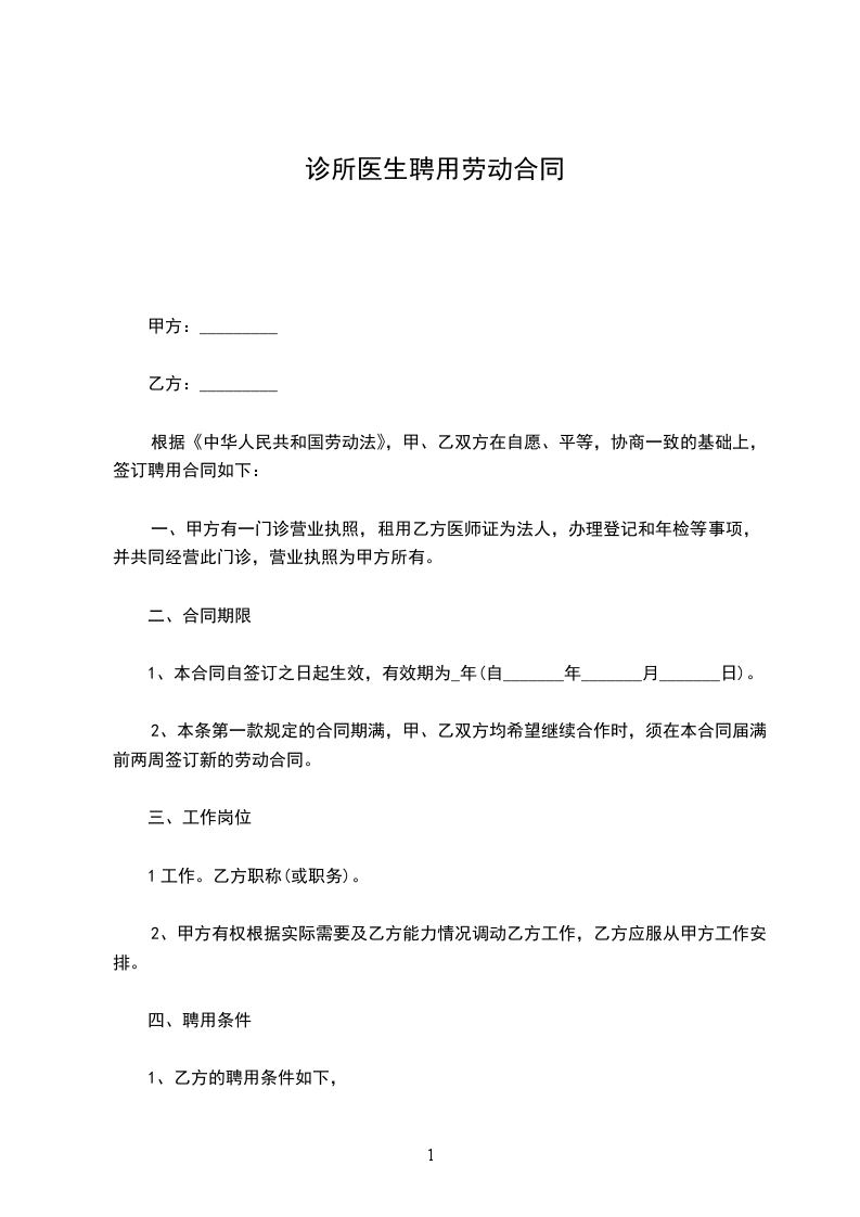 1、乙方的聘用条件如下,