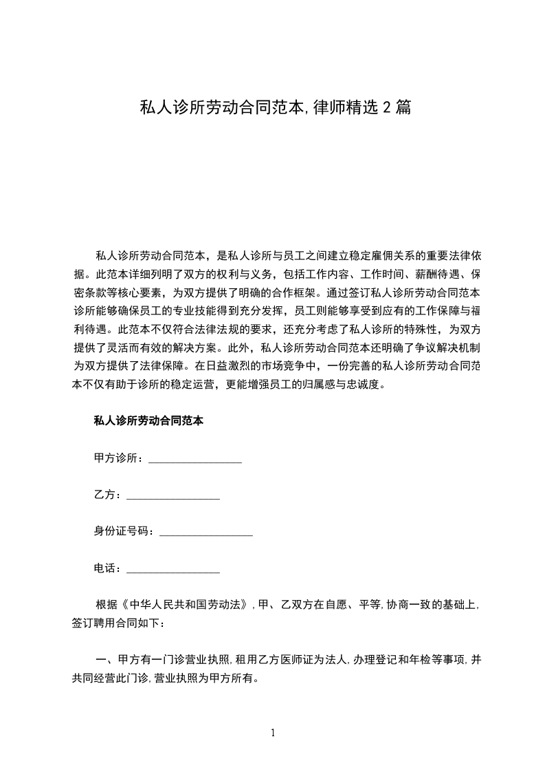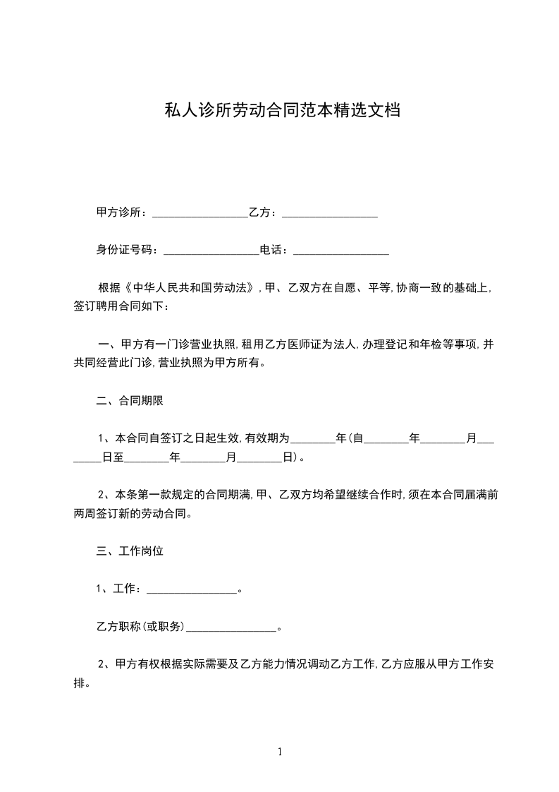 五、工作时间:甲方根据诊所医疗工作特点,规定乙方的工作时间,每天工作时间根据需要具体安排,每天工作8小时,每周休息一天。