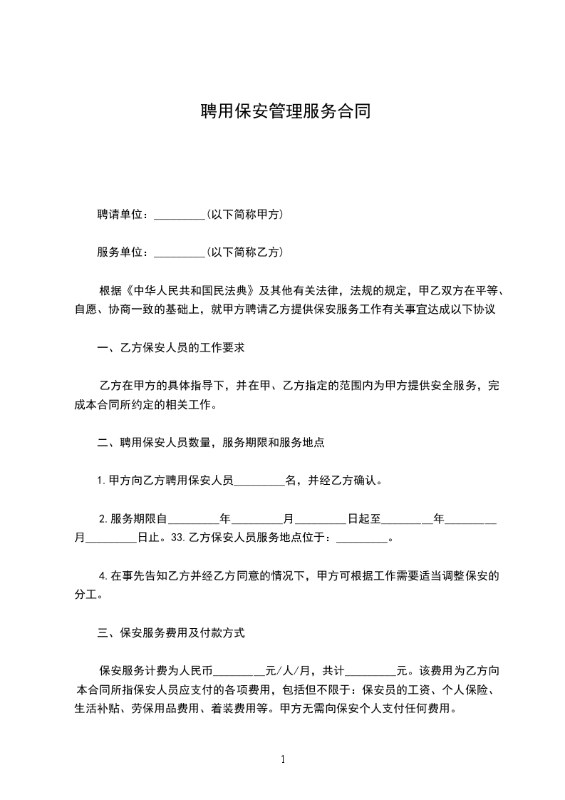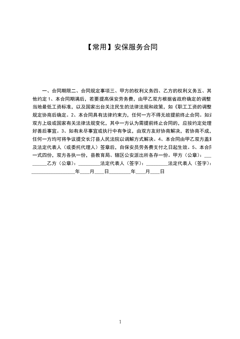 1、本合同期满后,若要提高保安劳务费,由甲乙双方根据省政府确定的调整当地最低工资标准,以及国家出台关注民生的法律法规和政策,如《职工工资的调整》规定协商后确定。