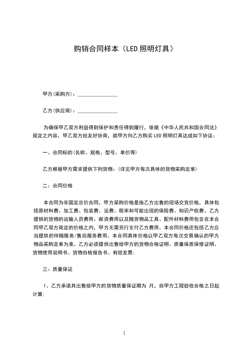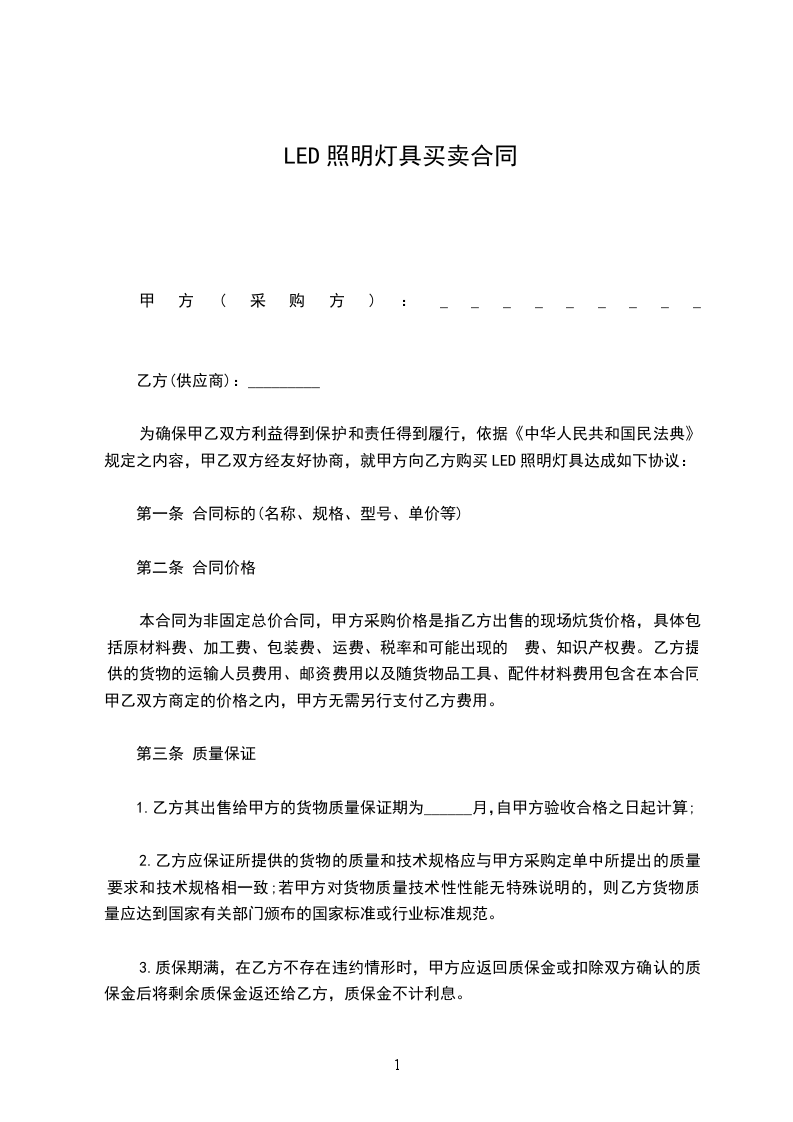 为确保甲乙双方利益得到保护和责任得到履行,依据《中华人民共和国民法典》规定之内容,甲乙双方经友好协商,就甲方向乙方购买LED照明灯具达成如下协议: